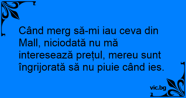 Când merg să-mi iau ceva din Mall, niciodată nu mă interesează prețul, mereu sunt îngrijorată să nu piuie când ies.