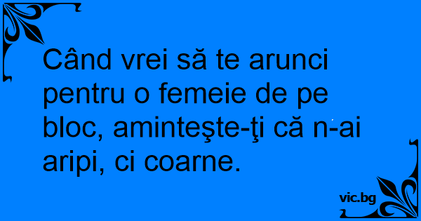 Când vrei să te arunci pentru o femeie de pe bloc, aminteşte-ţi că n-ai aripi, ci coarne.