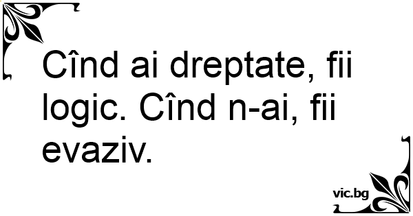 Cînd ai dreptate, fii logic. Cînd n-ai, fii evaziv.