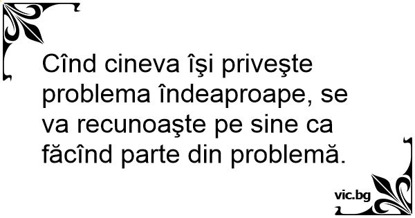 Cînd cineva îşi priveşte problema îndeaproape, se va recunoaşte pe sine ca făcînd parte din problemă.