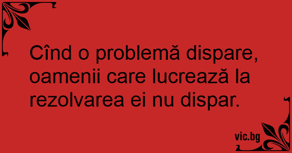 Cînd o problemă dispare, oamenii care lucrează la rezolvarea ei nu dispar.