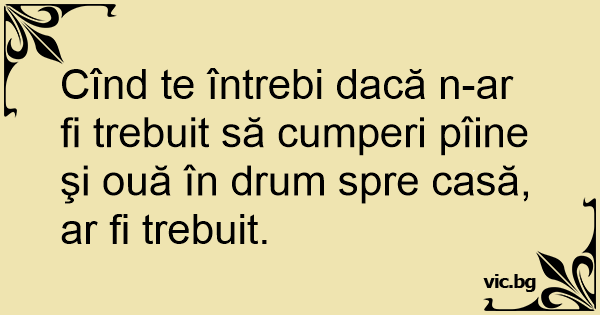 Cînd te întrebi dacă n-ar fi trebuit să cumperi pîine şi ouă în drum spre casă, ar fi trebuit.