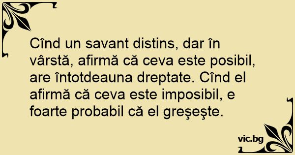 Cînd un savant distins, dar în vârstă, afirmă că ceva este posibil, are întotdeauna dreptate. Cînd el afirmă că ceva este imposibil, e foarte probabil că el greşeşte.