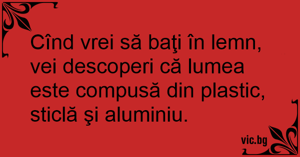 Cînd vrei să baţi în lemn, vei descoperi că lumea este compusă din plastic, sticlă şi aluminiu.