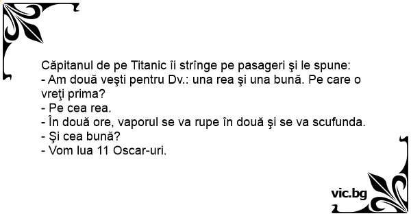 - Am două veşti pentru Dv.: una rea şi una bună. Pe care o vreţi prima?