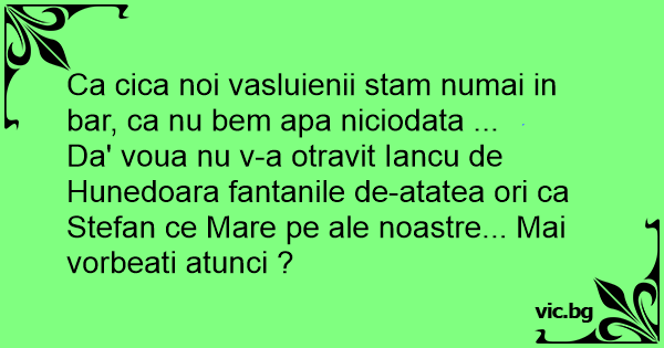 Ca cica noi vasluienii stam numai in bar, ca nu bem apa niciodata ...