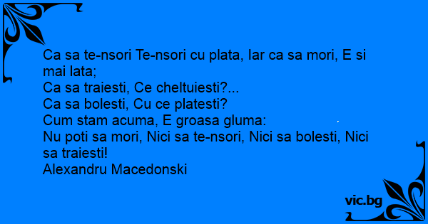 Ca sa te-nsori Te-nsori cu plata, Iar ca sa mori, E si mai lata;