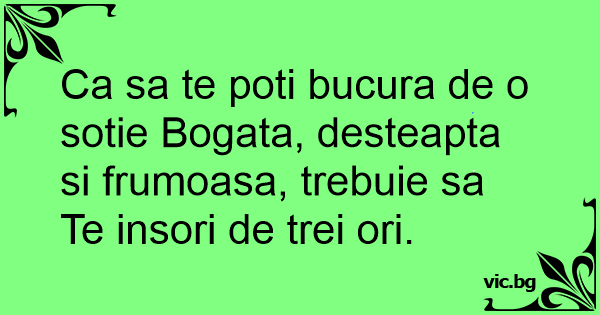 Ca sa te poti bucura de o sotie Bogata, desteapta si frumoasa, trebuie sa Te insori de trei ori.