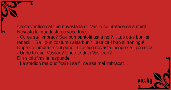 Ca sa verifice cat tine nevasta la el, Vasile se preface ca a murit.