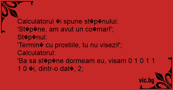 'Ba sa st�p�ne dormeam eu, visam 0 1 0 1 1 1 0 �i, dintr-o dat�, 2;