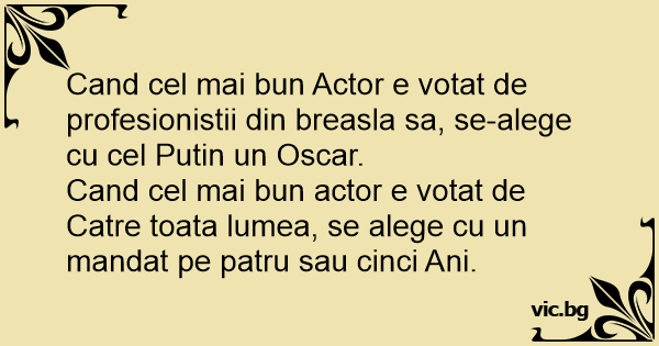 Cand cel mai bun actor e votat de Catre toata lumea, se alege cu un mandat pe patru sau cinci Ani.