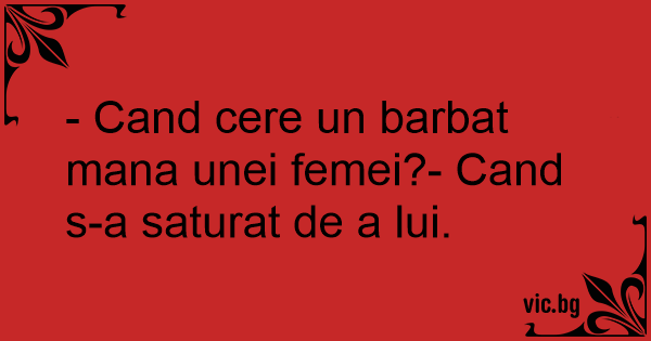 - Cand cere un barbat mana unei femei?- Cand s-a saturat de a lui.