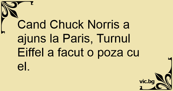Cand Chuck Norris a ajuns la Paris, Turnul Eiffel a facut o poza cu el. 66 0 0 Bancuri cu Chuck Norris