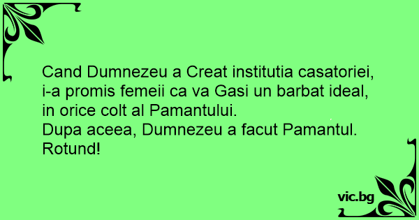 Cand Dumnezeu a Creat institutia casatoriei, i-a promis femeii ca va Gasi un barbat ideal, in orice colt al Pamantului.