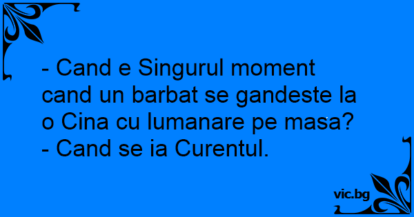 - Cand e Singurul moment cand un barbat se gandeste la o Cina cu lumanare pe masa?