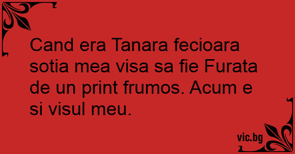 Cand era Tanara fecioara sotia mea visa sa fie Furata de un print frumos. Acum e si visul meu.