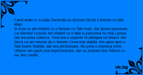 Cand eram in scoala Generala nu doream decat o femeie cu tate Mari.