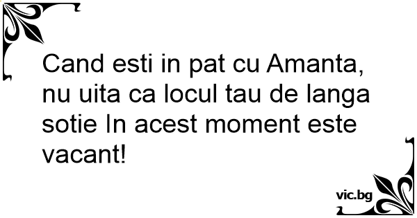 Cand еsтi in pat cu Amanta, nu uita ca locul tau de langa sotie In acest moment este vacant!