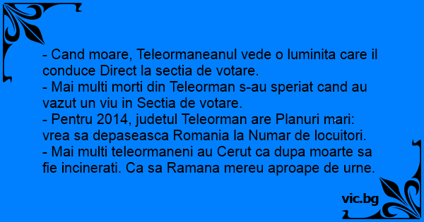 - Cand moare, Teleormaneanul vede o luminita care il conduce Direct la sectia de votare.