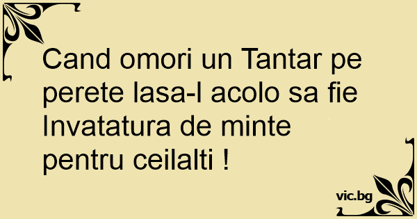Cand omori un Tantar pe perete lasa-l acolo sa fie Invatatura de minte pentru ceilalti !