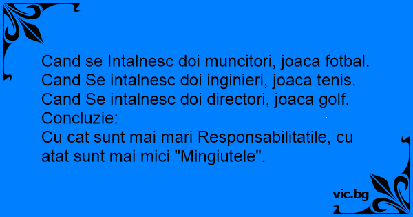 Cu cat sunt mai mari Responsabilitatile, cu atat sunt mai mici "Mingiutele".