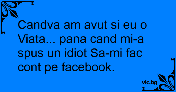 Candva am avut si eu o Viata... pana cand mi-a spus un idiот Sa-mi fac cont pe facebook.