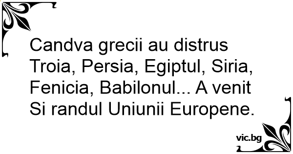 Candva grecii au distrus Тrоiа, Persia, Egiptul, Siria, Fenicia, Babilonul... A venit Si randul Uniunii Europene.