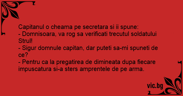 - Domnisoara, va rog sa verificati trecutul soldatului Strul!