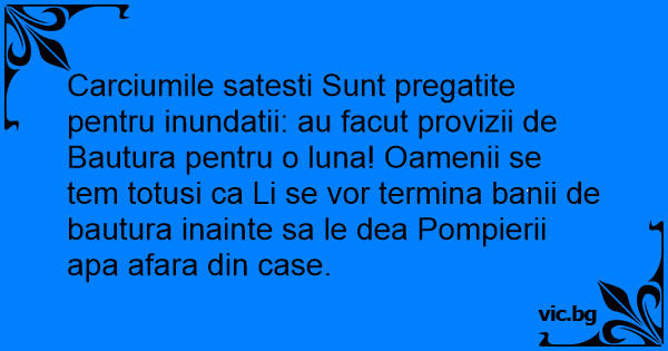 Carciumile satesti Sunt pregatite pentru inundatii: au facut provizii de Bautura pentru o luna! Oamenii se tem totusi ca Li se vor termina banii de bautura inainte sa le dea Pompierii apa afara din case.