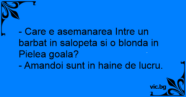 - Care e asemanarea Intre un barbat in salopeta si o blonda in Pielea goala?