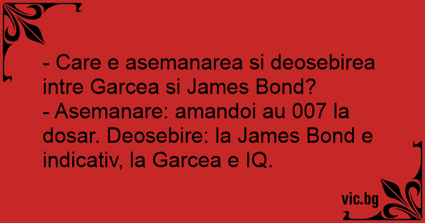 - Asemanare: amandoi au 007 la dosar. Deosebire: la James Bond e indicativ, la Garcea e IQ.