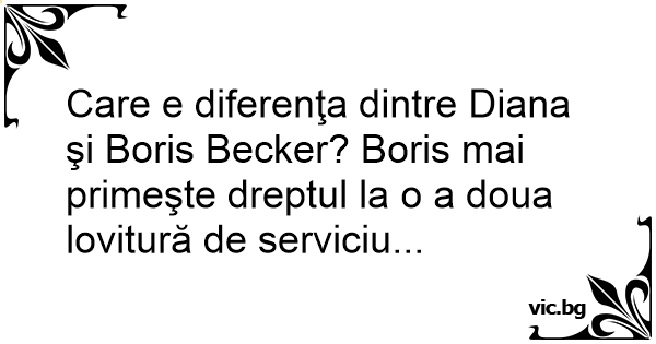 Care e diferenţa dintre Diana şi Boris Becker? Boris mai primeşte dreptul la o a doua lovitură de serviciu...