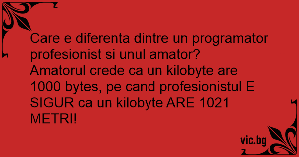 Amatorul crede ca un kilobyte are 1000 bytes, pe cand profesionistul E SIGUR ca un kilobyte ARE 1021 METRI!
