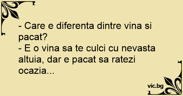 - E o vina sa te culci cu nevasta altuia, dar e pacat sa ratezi ocazia...