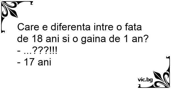 Care e diferenta intre o fata de 18 ani si o gaina de 1 an?