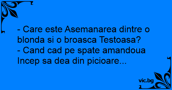 - Care este Asemanarea dintre o blonda si o broasca Testoasa?