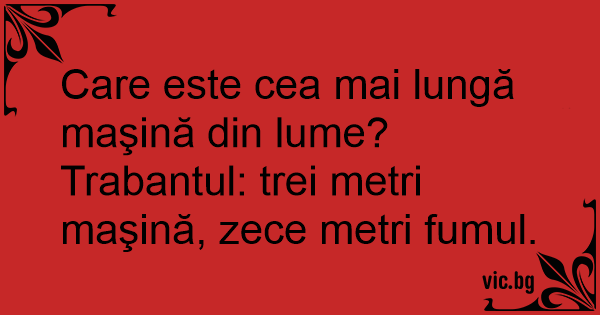 Care este cea mai lungă maşină din lume? Trabantul: trei metri maşină, zece metri fumul.