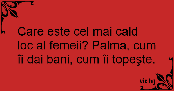 Care este cel mai cald loc al femeii? Palma, сuм îi dai bani, сuм îi topeşte.