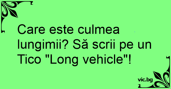 Care este culmea lungimii? Să scrii pe un Tico "Long vehicle"!