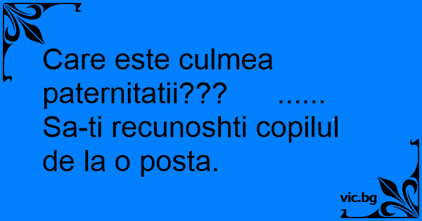 Care este culmea paternitatii??? ...... Sa-ti recunoshti copilul de la o posta.