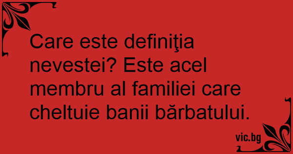 Care este definiţia nevestei? Este acel membru al familiei care cheltuie banii bărbatului.