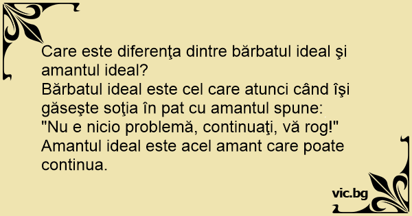 Care este diferenţa dintre bărbatul ideal şi amantul ideal?