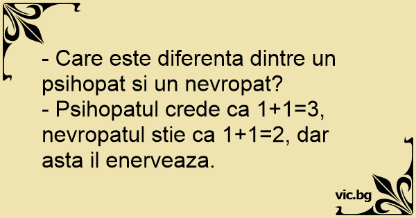- Psihopatul crede ca 1+1=3, nevropatul stie ca 1+1=2, dar asta il enerveaza.