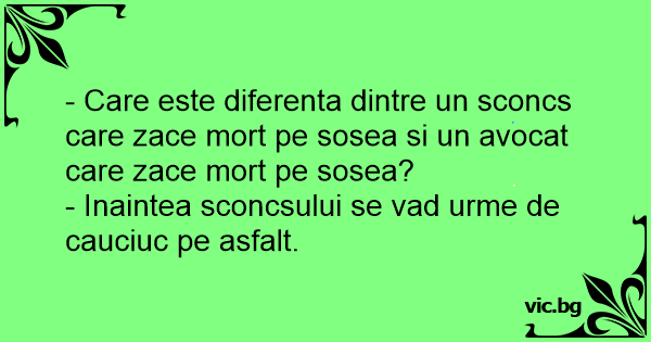 - Care este diferenta dintre un sconcs care zace mort pe sosea si un avocat care zace mort pe sosea?