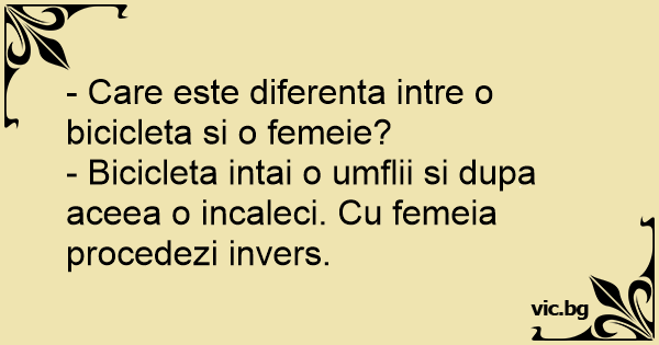 - Bicicleta intai o umflii si dupa aceea o incaleci. Cu femeia procedezi invers.