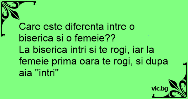La biserica intri si te rogi, iar la femeie prima oara te rogi, si dupa aia ''intri''