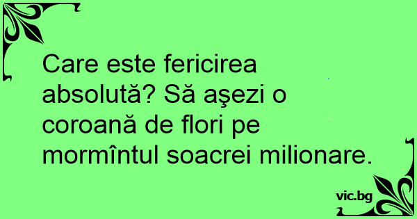 Care este fericirea absolută? Să aşezi o coroană de flori pe mormîntul soacrei milionare.