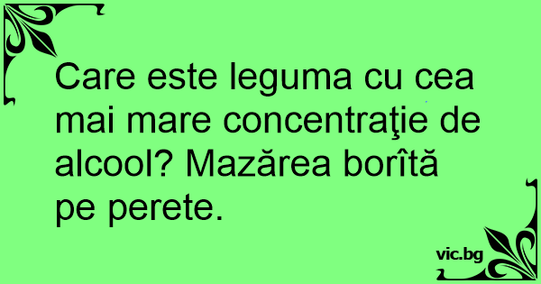 Care este leguma cu cea mai mare concentraţie de alcool? Mazărea borîtă pe perete.