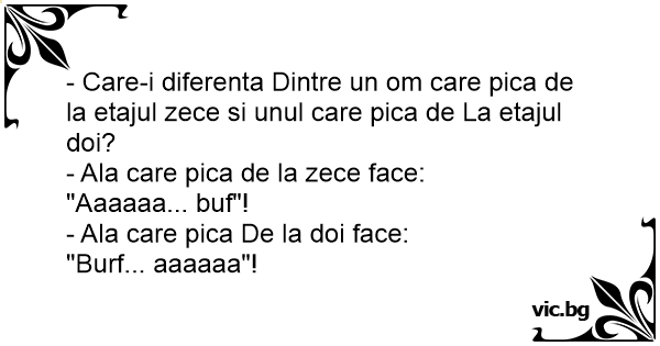 - Care-i diferenta Dintre un om care рiса de la etajul zece si unul care рiса de La etajul doi?