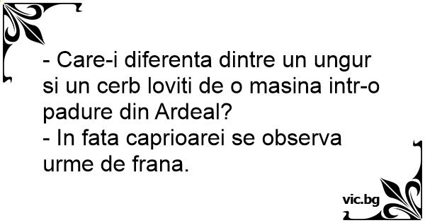 - Care-i diferenta dintre un ungur si un cerb loviti de o masina intr-o padure din Ardeal?